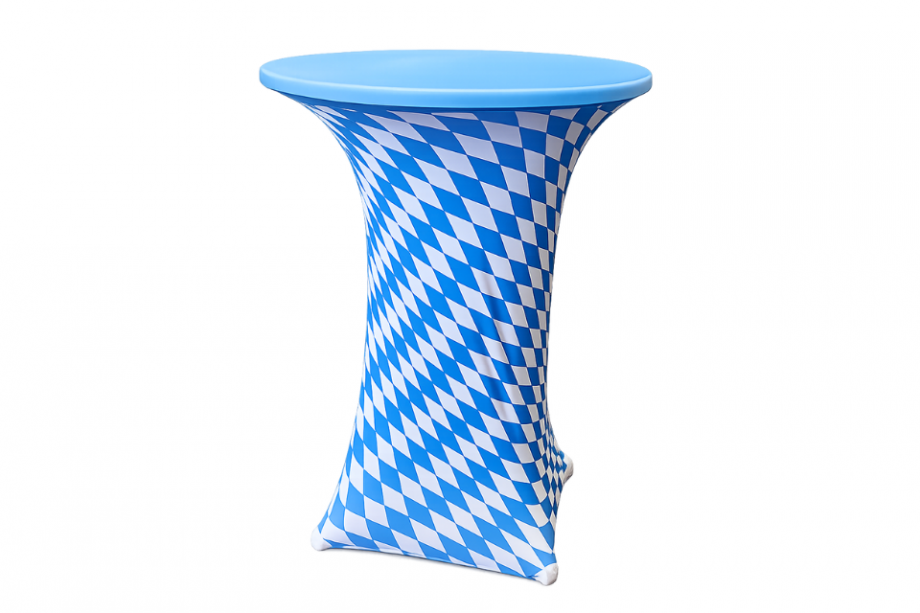 Beschreibung:Verleihe deinem Event im Handumdrehen ein elegantes und professionelles Ambiente! Unsere hochwertige Stretch-Husse im Oktoberfest Dekor ist speziell für Stehtische mit einem Durchmesser von 80 cm konzipiert und kombiniert modernes Design mit praktischer Funktionalität. Eigenschaften & Vorteile: • Perfekte Passform: Das elastische Stretch-Material sorgt für eine faltenfreie, straff gespannte Optik. • Robustes Material: Gefertigt aus strapazierfähigem Polyester-Elasthan – ideal für häufige Einsätze auf Events. • Einfaches Handling: Schnell über den Tisch gespannt, mit verstärkten Fußtaschen für sicheren Halt. • Elegantes Design: Im Oktoberfest Dekor – perfekt für Messen, Firmenfeiern, Hochzeiten, Partys und Gastronomie. • Pflegeleicht & hygienisch: Die Reinigung der Husse übernehmen selbstverständlich wir, sodass du dich um nichts kümmern musst. Wichtiger Hinweis: Der Stehtisch ist nicht im Mietumfang enthalten und muss separat bereitgestellt oder ebenfalls gemietet werden. Einsatzbereiche: Events, Promotion-Stände, Empfänge, private Feiern, Outdoor-Veranstaltungen, Gastronomie u. v. m. Fazit: Mit unserer blau weißen Oktoberfest Stretch-Husse zur Miete erhältst du ein stilvolles, modernes und gepflegtes Ausstattungselement für jedes Event – ohne Aufwand und stets in einwandfreiem Zustand.