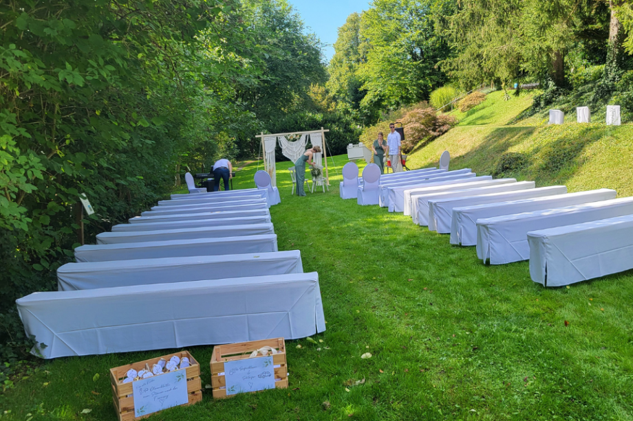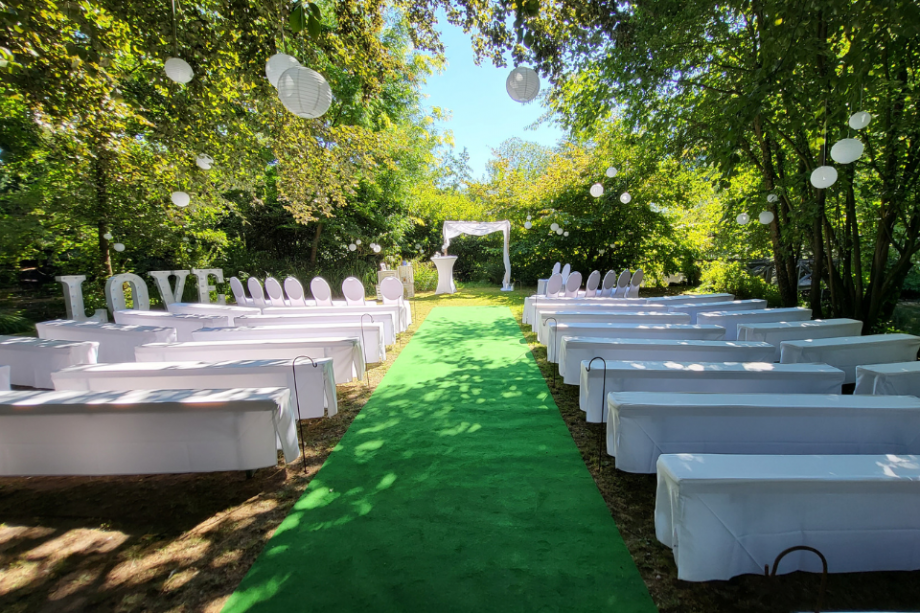 Beschreibung:Du planst eine freie Trauung unter freiem Himmel, eine romantische Gartenhochzeit oder eine lockere Feier im Scheunenstil? Unsere Bierbänke bieten Dir die perfekte Kombination aus rustikalem Charme, gemütlicher Atmosphäre und praktischer Flexibilität. Auf Wunsch statten wir alle Bierbänke mit bodenlangen weißen Hussen und passenden Sitzauflagen aus – für maximalen Komfort und ein festliches Gesamtbild. Warum Bierbänke? • Schnell aufgebaut: Ideal für spontane Änderungen oder knappe Zeitpläne. • Platzsparend & effizient: Perfekt für große Gästelisten ohne Kompromisse beim Komfort. • Eleganter Look möglich: Mit unseren hochwertigen weißen Hussen (bodenlang) und weichen Sitzauflagen verwandelst Du jede Bank in eine stilvolle Sitzgelegenheit. • Outdoor-tauglich: Perfekt für Wiesen, Waldlichtungen, Strandabschnitte oder Innenhöfe. Perfekt für die freie Trauung Unsere Bierbänke – ob rustikal oder mit Hussen verkleidet – lassen sich perfekt für jede Art von Trauung anpassen. Für eine intime Zeremonie im kleinen Kreis oder eine große Feier: Wir liefern genau die Menge, die Du brauchst. Die Hussen sorgen dabei für ein besonders festliches Ambiente. Tolle Kombinationsmöglichkeiten • Bierbänke + bodenlange weiße Hussen & Sitzauflagen • Bierbänke + Traubogen • Bierbänke + Teppichläufer für den Mittelgang • Bierbänke + Sonnen- oder Regenschutz (Zelt, Pavillon, Sonnensegel) Für drinnen & draußen geeignet Ob Landhochzeit, Gartenfeier, See-Location oder Eventhalle – unsere Bierbänke passen zu jedem Stil. Mit den weißen Hussen entstehen elegante Sitzreihen, die sich harmonisch ins Gesamtbild einfügen. Unser Service • Lieferung & Abholung gegen Aufpreis • Auf- und Abbau gegen Aufpreis • Reinigung im Preis enthalten • Flexible Mietdauer • Große Stückzahl verfügbar Passendes Zubehör • Bodenlange weiße Hussen • Weiche Sitzauflagen • Bierzelttische • Stehtische • Traubogen • Sektgläser • Akkubox