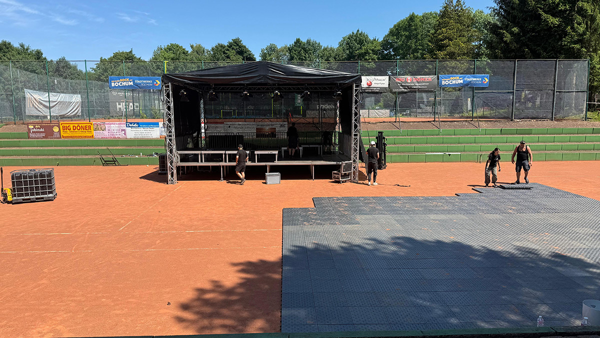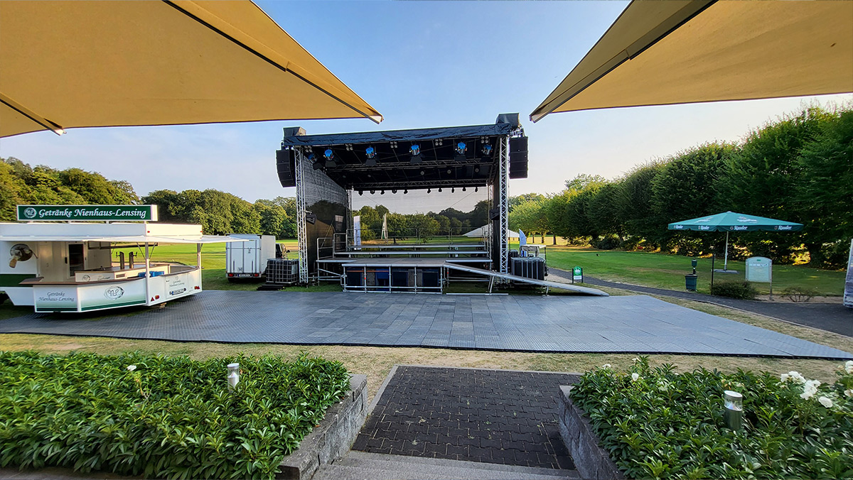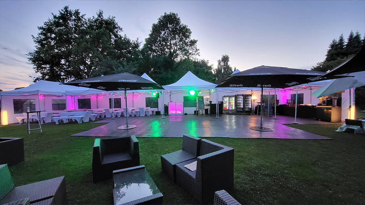 Ob mitten in der Stadt, auf einem Firmengelände oder im eigenen Garten in Bochum: Du arbeitest immer mit demselben Eventboden, den wir passend für dein Event verlegen.